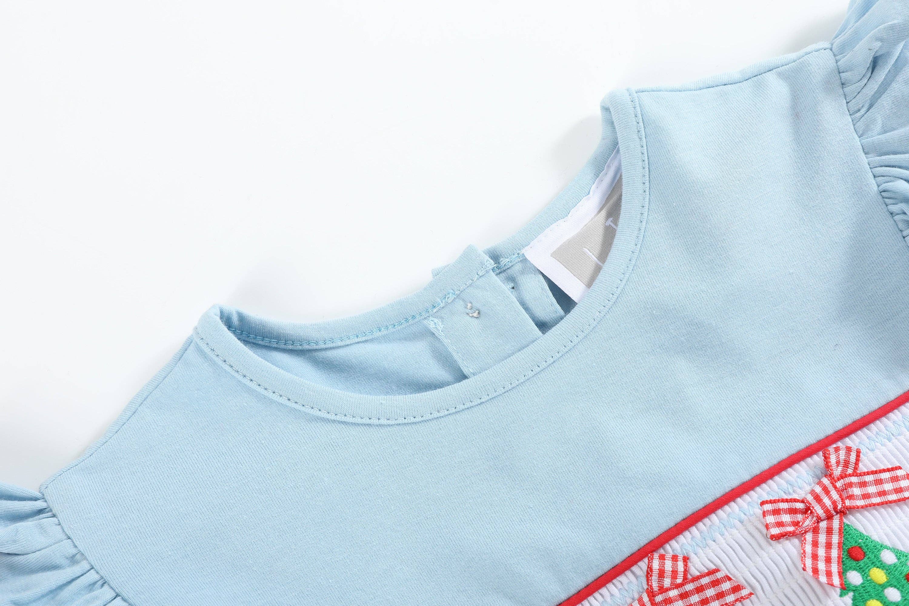 Lil Cactus - Light Blue Christmas Tree Smocked Knit Dress