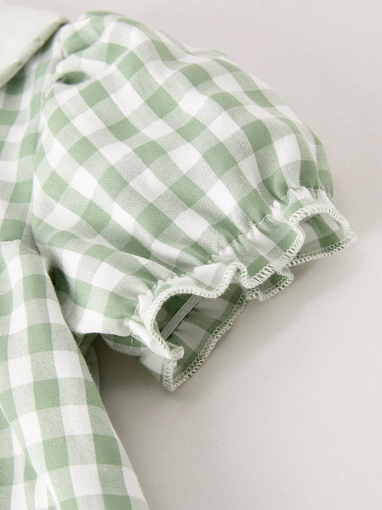 Rylee Faith Designs - Pumpkin Applique Plaid Green Girls Dress