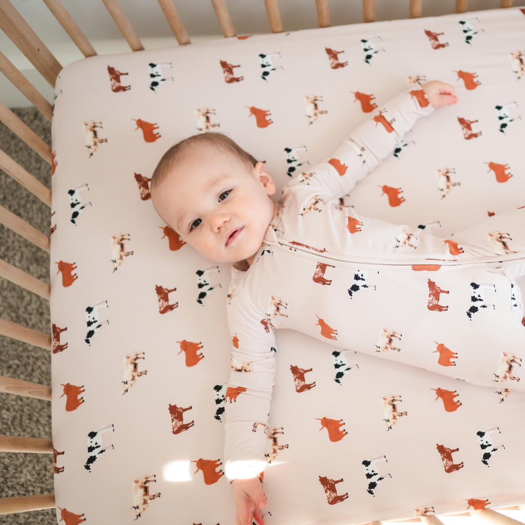 bug + bean kids - Stretch Crib Sheet | Oatmeal Cow