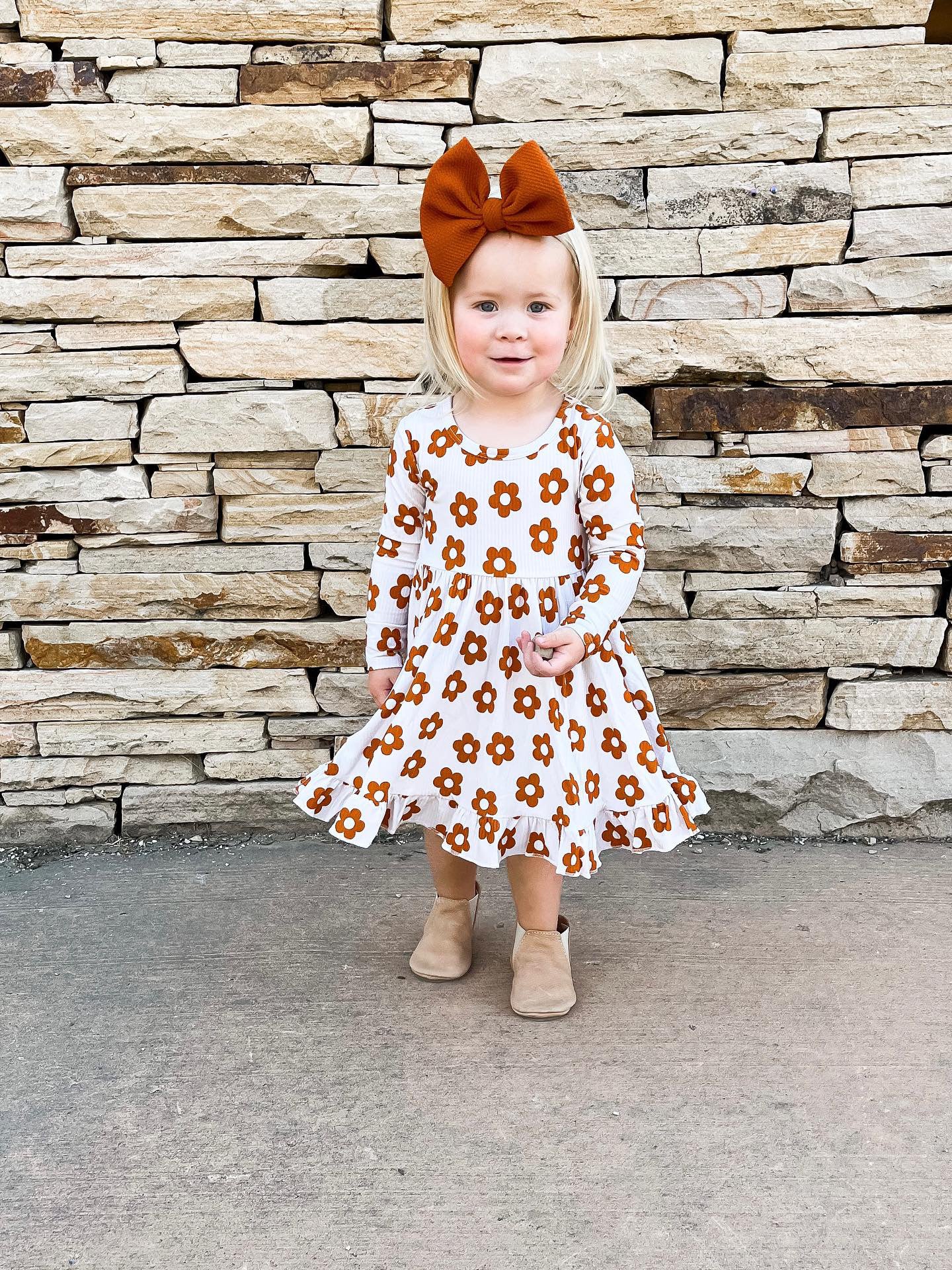 Tan Floral Ribbed Dress